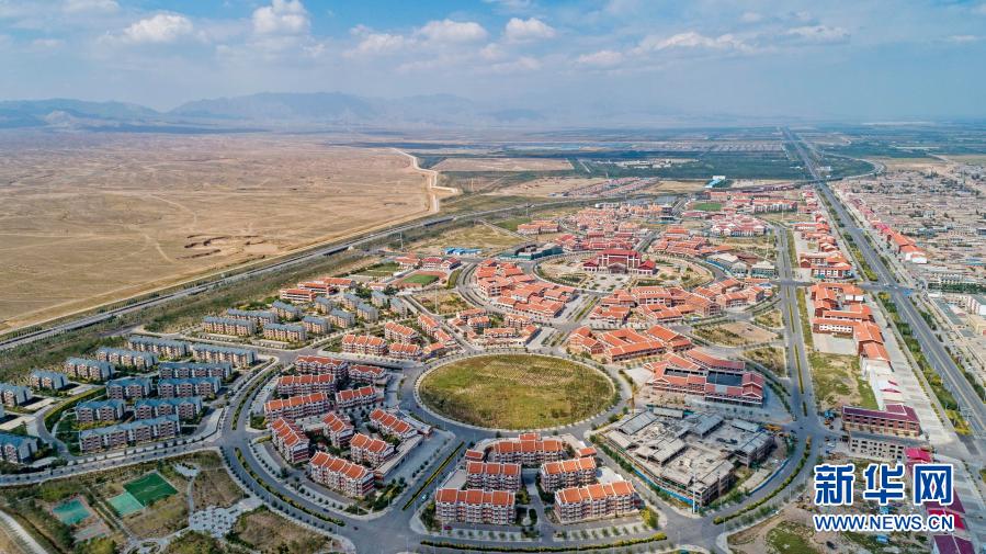 這是2020年9月7日在四川省涼山彝族自治州越西縣拍攝的易地扶貧搬遷安置點河西呷多新村(無人機照片)。新華社記者 王曦 攝