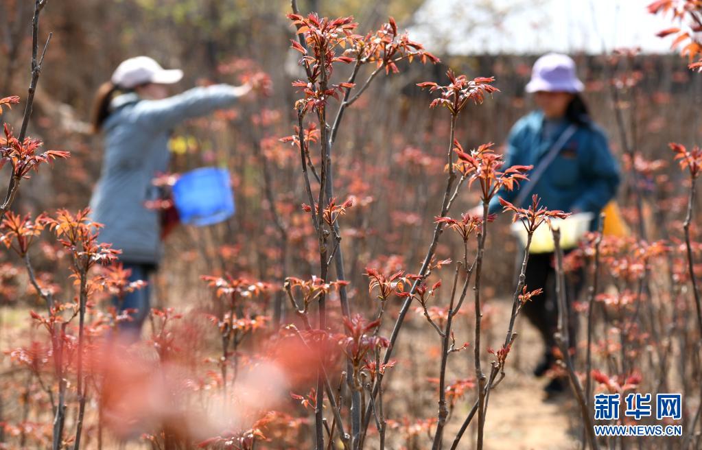 4月6日,農民在石家莊市鹿泉區(qū)白鹿泉鄉(xiāng)谷家峪村采摘香椿。