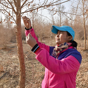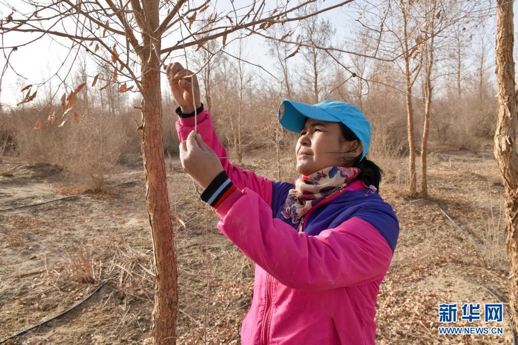 邊種樹、邊研究,帕提古麗和同事實踐了滴灌節(jié)水技術、草方格固定、栽植抗旱樹種、防沙林綁草護苗……沙漠里的樹木成活率不斷提升,生態(tài)環(huán)境不斷變好。