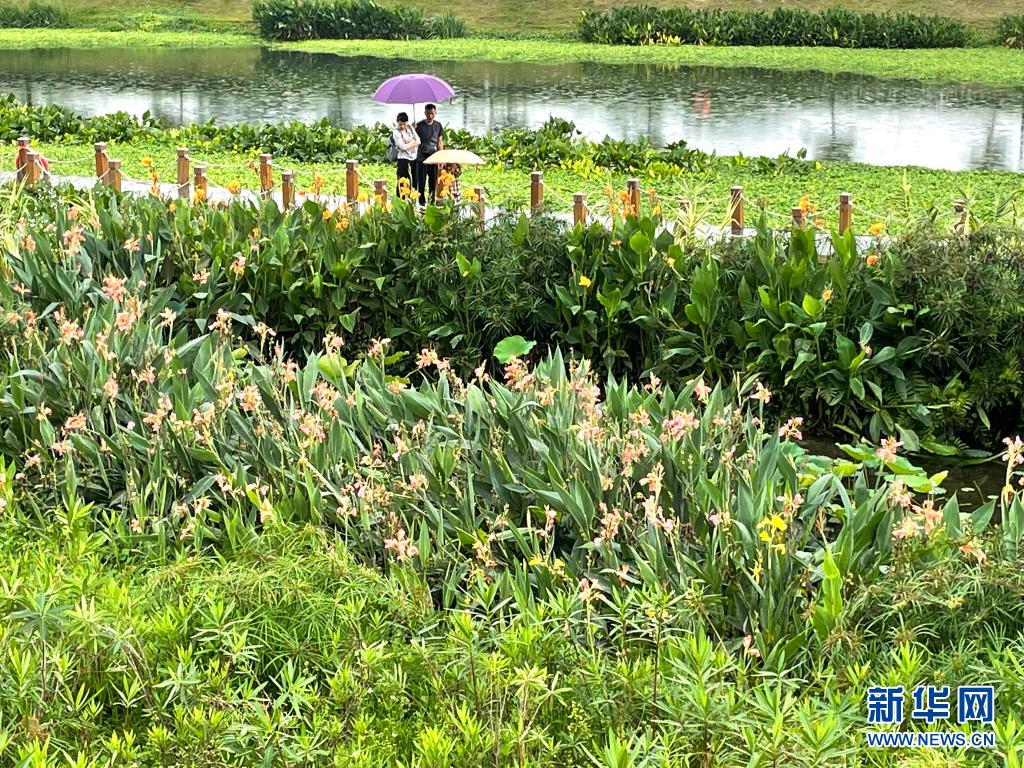 立夏時節(jié),廣西南寧市那考河濕地公園內(nèi)草木吐翠、鮮花斗艷,一派繁茂景象。