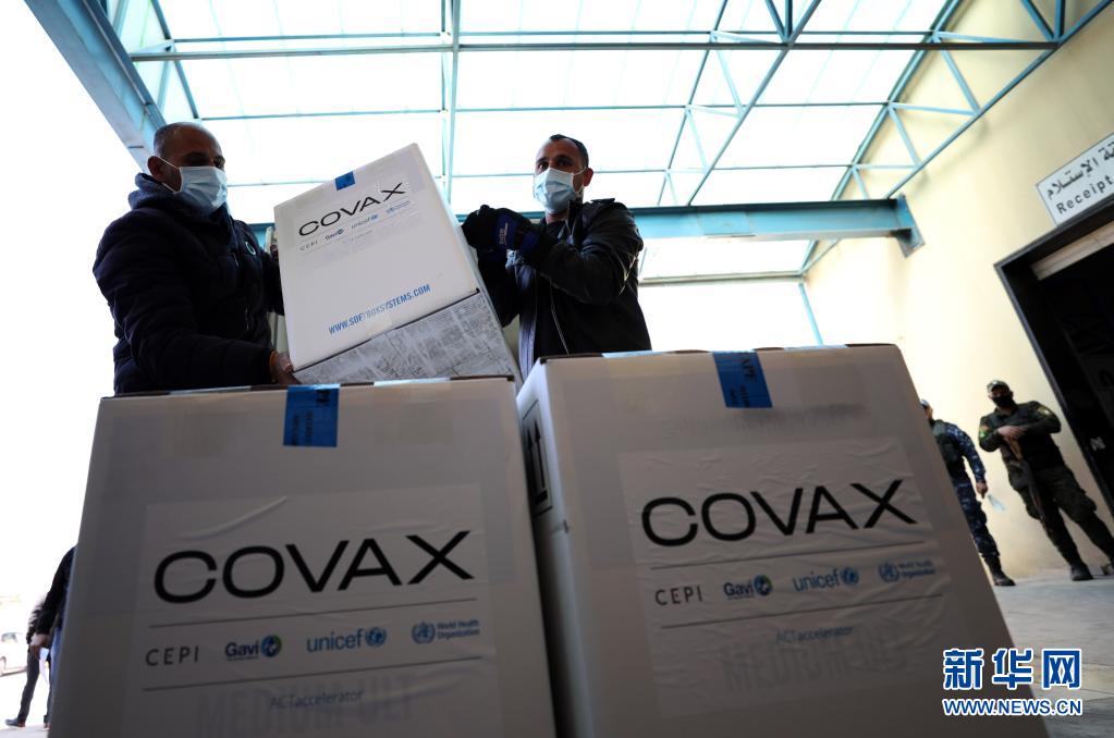 3月17日,在約旦河西岸城市納布盧斯附近的薩利姆鎮(zhèn),巴勒斯坦工作人員搬運(yùn)通過(guò)世界衛(wèi)生組織主導(dǎo)的“新冠肺炎疫苗實(shí)施計(jì)劃(COVAX)”收到的新冠疫苗。新華社發(fā)(艾曼·諾巴尼攝)