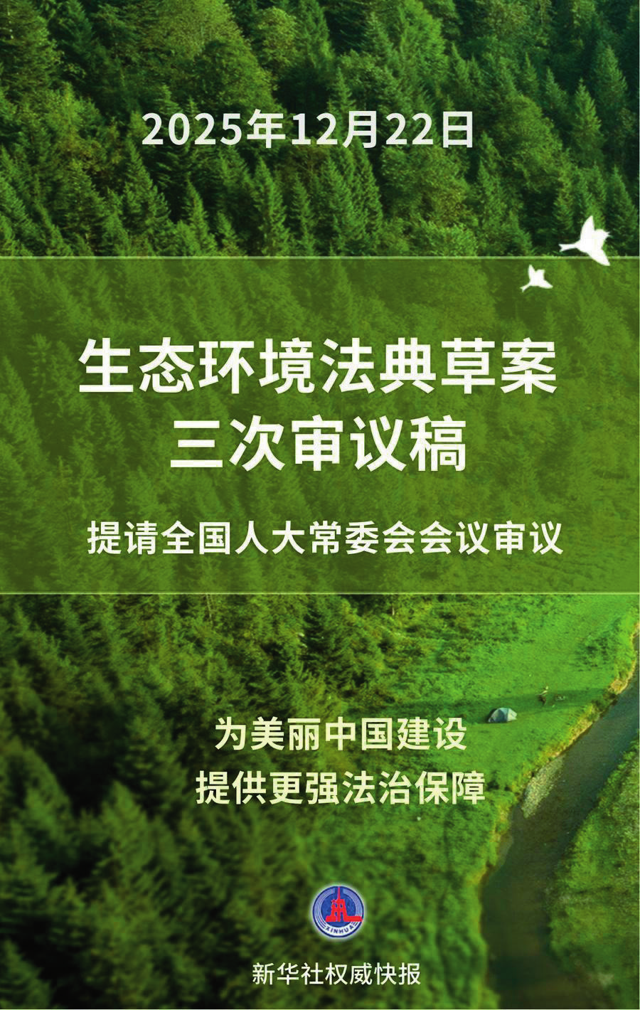 2025年12月22日,中国生态环境法典草案三次审议稿提请十四届全国人大常委会第十九次会议审议