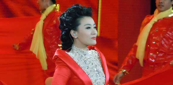 譚晶著中國紅長裙獻唱