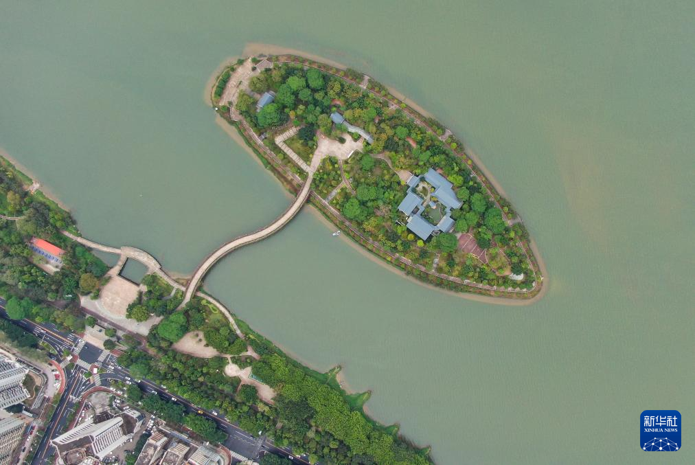 2021年4月8日拍摄的江心岛书院所在的广东清远清城区北江的江心岛(无人机照片)。新华社记者 邓华 摄