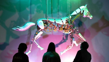 2月10日,观众在台湖公园观赏“龙腾马跃”大型彩灯。