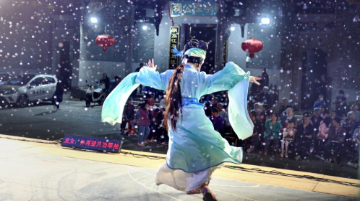 2月11日,市民和游客在四川省泸州市江阳区大梯步文化广场赏灯游玩。