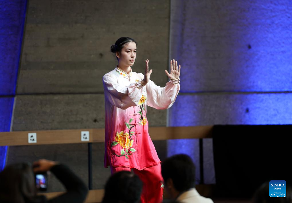 The program featured synchronized fan routines, sword demonstrations and a paired performance combining Taijiquan with guqin music, with each display reflecting core principles such as the balance of yin and yang and the interplay between softness and strength.