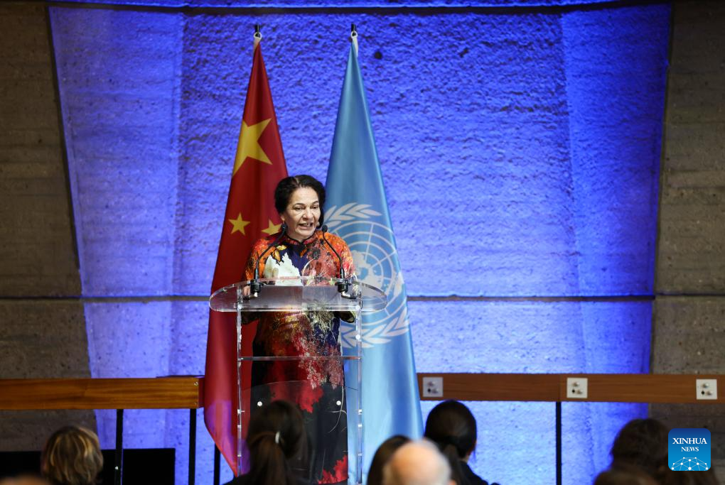 Lidia Brito, Assistant Director-General for Social and Human Sciences (ad interim) of United Nations Educational, Scientific and Cultural Organization (UNESCO), speaks during the celebration event in Paris, France, on March 18, 2026. A celebration ahead of the first International Day of Taijiquan, to be observed on March 21, was held on Wednesday at the UNESCO headquarters in Paris under the theme "Fit for Life, Go for Taiji." (Xinhua/Wu Huiwo)