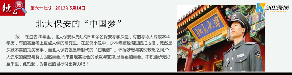 心有多大,舞臺就有多大,有夢就有希望,北大的保安有夢??筛匾氖?,他們擁有了能讓夢實(shí)現(xiàn)的舞臺,北大保安已經(jīng)擁有了。