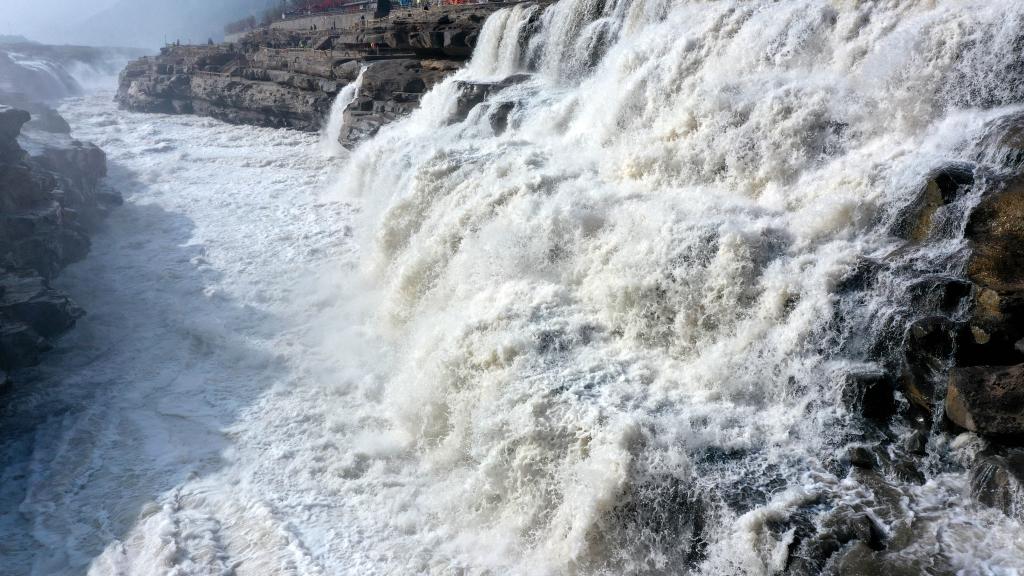 無人機航拍壺口瀑布 驚濤拍岸場面壯觀