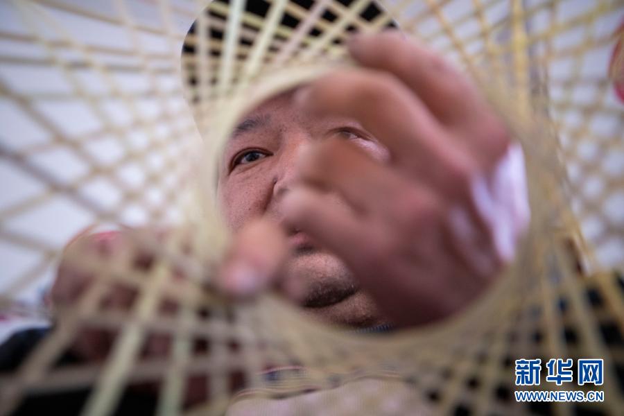 云南省會澤縣大一學生王淼的父親王玉榮在家中編竹編(2月6日)。新華社記者 林碧鋒 攝
