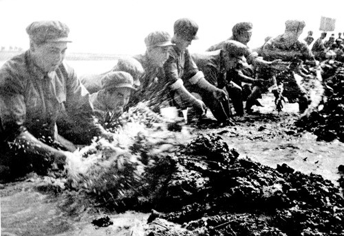????西昌衛(wèi)星發(fā)射中心西昌發(fā)射場建設初期,老一輩航天人在安寧河中搶建長征橋(資料圖片)。新華社發(fā)