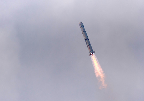 ????搭載風云二號08星的運載火箭在西昌衛(wèi)星發(fā)射中心點火發(fā)射(2014年12月31日攝)。新華社發(fā)(郭文彬 攝)