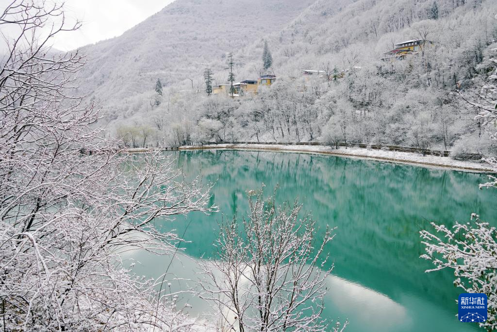 临近春分节气,甘肃省陇南市宕昌县出现降雪,春雪将官鹅沟景区装扮得银装素裹,白雪覆盖下的树木、湖泊和村庄共同构成一幅美丽画卷。