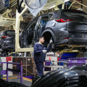 3月17日,在位于南京市江宁开发区的长安马自达汽车有限公司总装车间内,工人在生产线上进行生产作业。