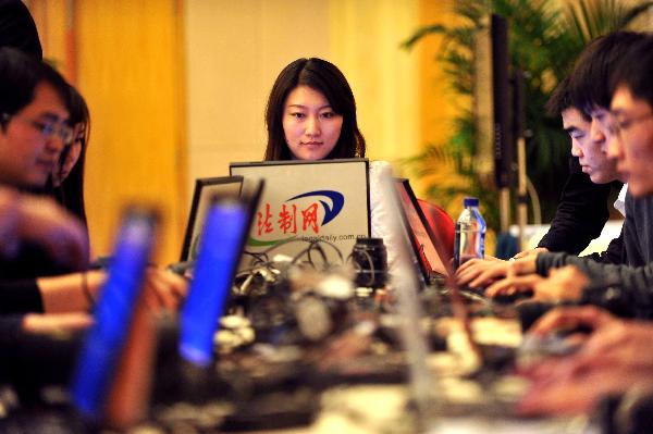 (兩會·人大開幕)記者搶時效