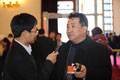 [新華網(wǎng)、中國(guó)政府網(wǎng)報(bào)道]政協(xié)委員們聚集在人民大會(huì)堂東大廳,歡聲笑語(yǔ)不斷。 [2011-03-03 14:41:55] |