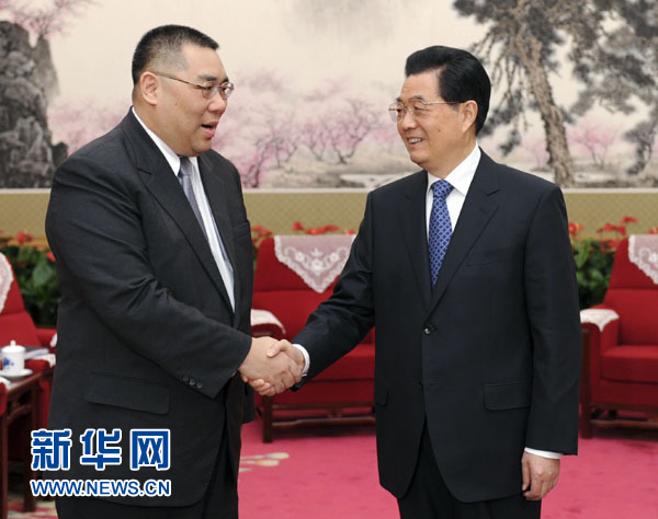 ??? 新華網(wǎng)快訊:國(guó)家主席胡錦濤21日下午在中南海會(huì)見(jiàn)了來(lái)京述職的澳門(mén)特別行政區(qū)行政長(zhǎng)官崔世安。