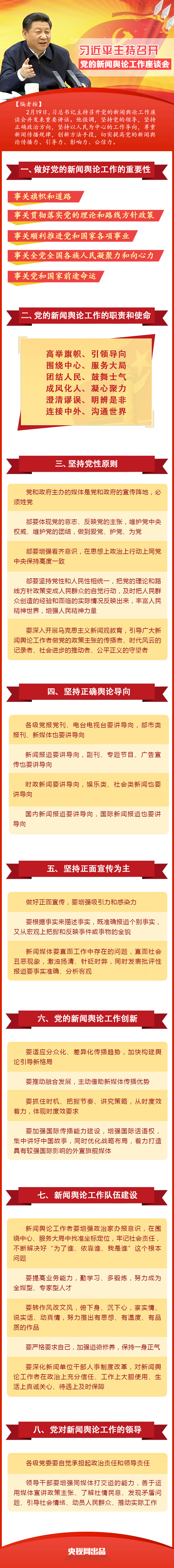 習(xí)近平強調(diào),做好黨的新聞輿論工作,事關(guān)旗幟和道路,事關(guān)貫徹落實黨的理論和路線方針政策,事關(guān)順利推進黨和國家各項事業(yè),事關(guān)全黨全國各族人民凝聚力和向心力,事關(guān)黨和國家前途命運。