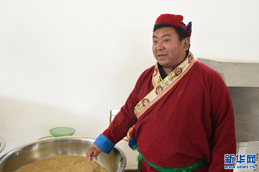 勒布溝特色產(chǎn)品農(nóng)牧民專(zhuān)業(yè)合作社負(fù)責(zé)人群增次仁向記者介紹情況(5月13日 攝)。新華網(wǎng)記者 陳琳 攝