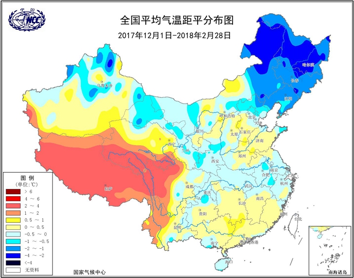 周兵:從氣候異常信號來看,我國于2017年10月-2018年3月出現(xiàn)一次弱的拉尼娜事件,一般拉尼娜對我國的直接影響就是冷冬,然而剛剛過去的冬季,全國平均氣溫-3.2℃,較常年同期(-3.4℃)還偏高0.2℃。雖然整體氣溫較常年平均偏高,但從氣溫距平分布來看,除青藏高原大部氣溫較常年同期偏高2~4℃外,全國其余地區(qū)氣溫接近常年或偏低,其中東北及內蒙古東北部、新疆北部等地偏低1~2℃,局地偏低2~4℃。