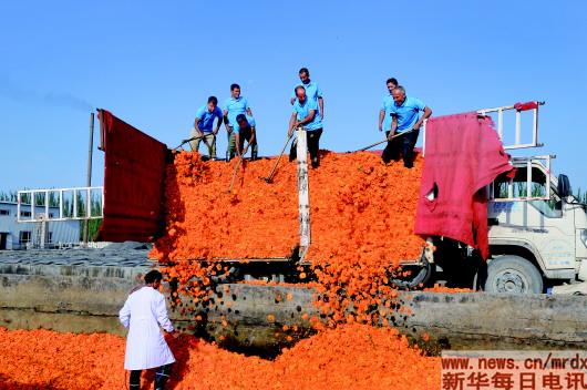 2019年7月,工人們將整車的萬壽菊卸下來,放進晨光生物莎車公司的青儲池進行發(fā)酵,再進行烘干、造粒、萃取后得到葉黃素浸膏,加工成葉黃素晶體,遠銷海外。
