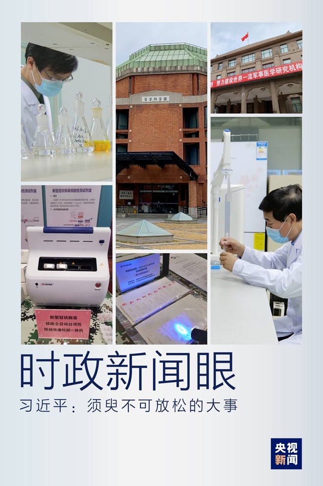 2日下午,習(xí)近平首先來到軍事醫(yī)學(xué)研究院考察。疫情發(fā)生以來,軍事醫(yī)學(xué)研究院集中力量展開應(yīng)急科研攻關(guān),取得了階段性成果。