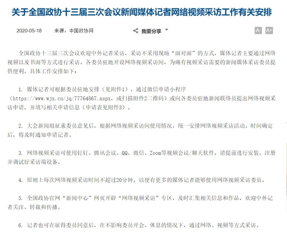 兩會(huì)開幕在即,5月18日,中國(guó)政協(xié)網(wǎng)發(fā)布了這樣一則通知:
