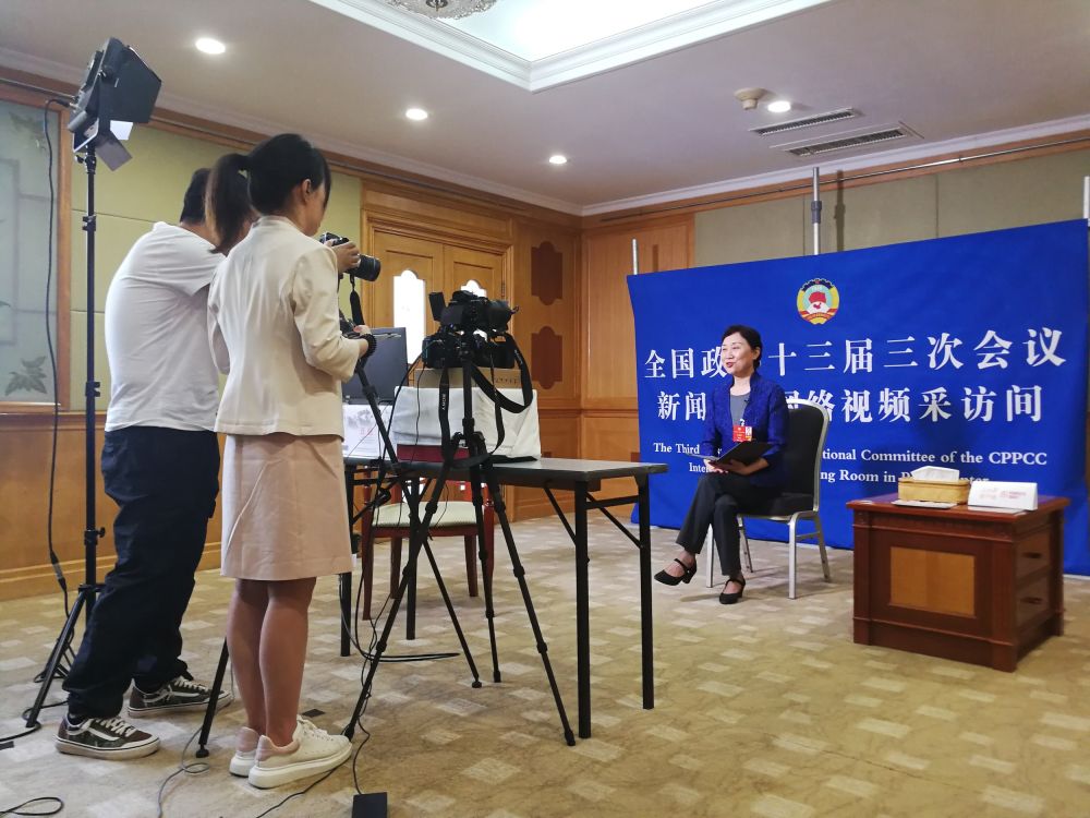 全國(guó)政協(xié)委員、湖南省政協(xié)主席李微微20日在友誼賓館駐地接受網(wǎng)絡(luò)視頻采訪。