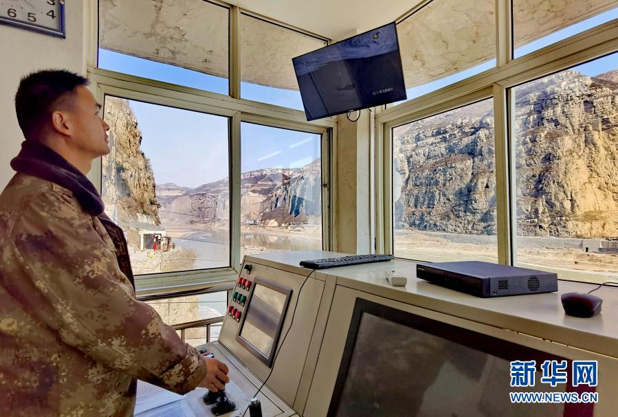 龍門水文站工作人員在纜道操作機房內操控纜道進行流量測驗(12月27日攝,手機照片)。新華社記者 劉詩平 攝