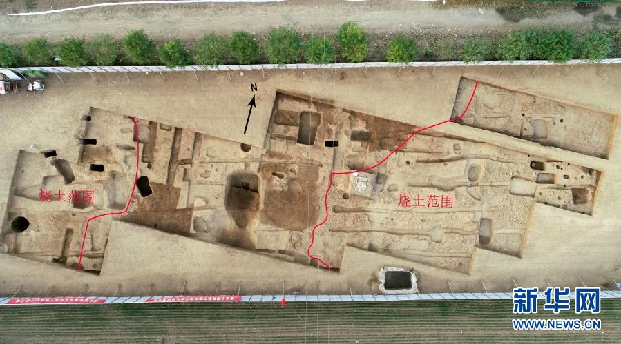 內(nèi)蒙古后城咀龍山時代石城發(fā)掘區(qū)航拍圖。新華社發(fā)(國家文物局供圖)