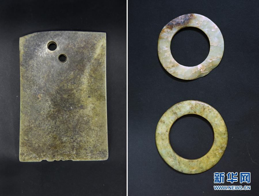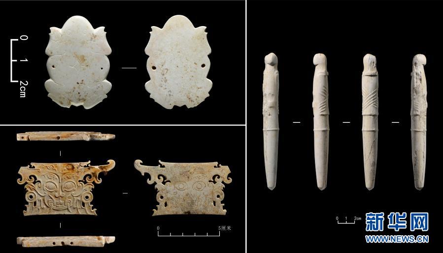 湖南澧縣孫家崗遺址出土的玉飾(拼版照片)。新華社發(fā)(國家文物局供圖)