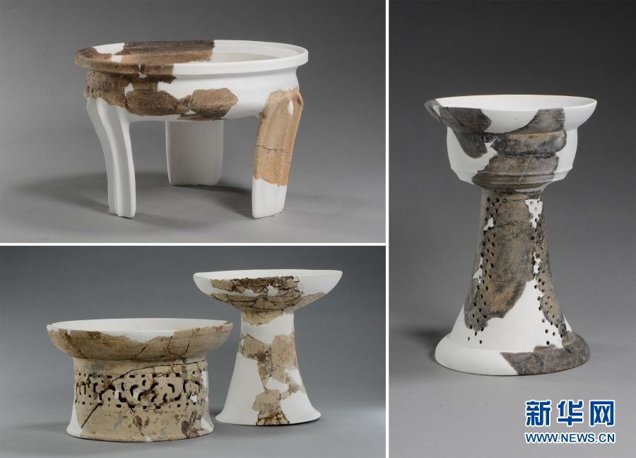 湖南華容七星墩遺址出土的肖家屋脊文化陶器(拼版照片)。新華社發(fā)(國家文物局供圖)