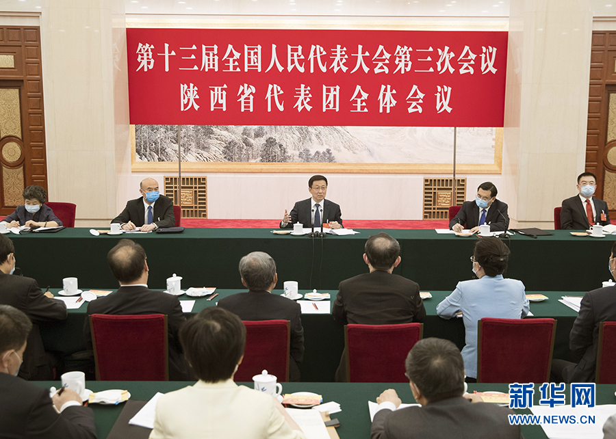 5月22日,中共中央政治局常委、國務(wù)院副總理韓正參加十三屆全國人大三次會議陜西代表團的審議。 新華社記者 王曄 攝