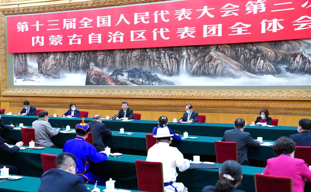 2020年5月22日,習(xí)近平參加十三屆全國人大三次會議內(nèi)蒙古代表團(tuán)的審議。新華社記者 黃敬文 攝