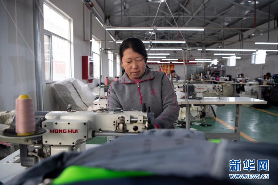 2020年12月29日,李三花在嵐縣普明鎮(zhèn)移民小區(qū)扶貧車(chē)間里加工箱包。新華社記者 楊晨光 攝