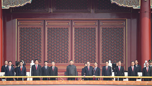 - Xi sobe à Tribuna de Tian'anmen para participar das celebra??es do Dia Nacional