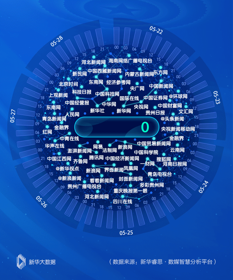 兩會開始后,新華睿思每4個小時進行一次傳播熱度監(jiān)測。數(shù)據(jù)顯示,媒體傳播熱度、網(wǎng)民對兩會的關(guān)注度與總書記的重要活動、重要講話發(fā)布時間點高度一致。
