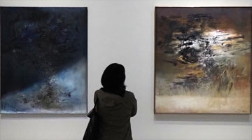 5月9日,观众在展览现场参观油画作品。