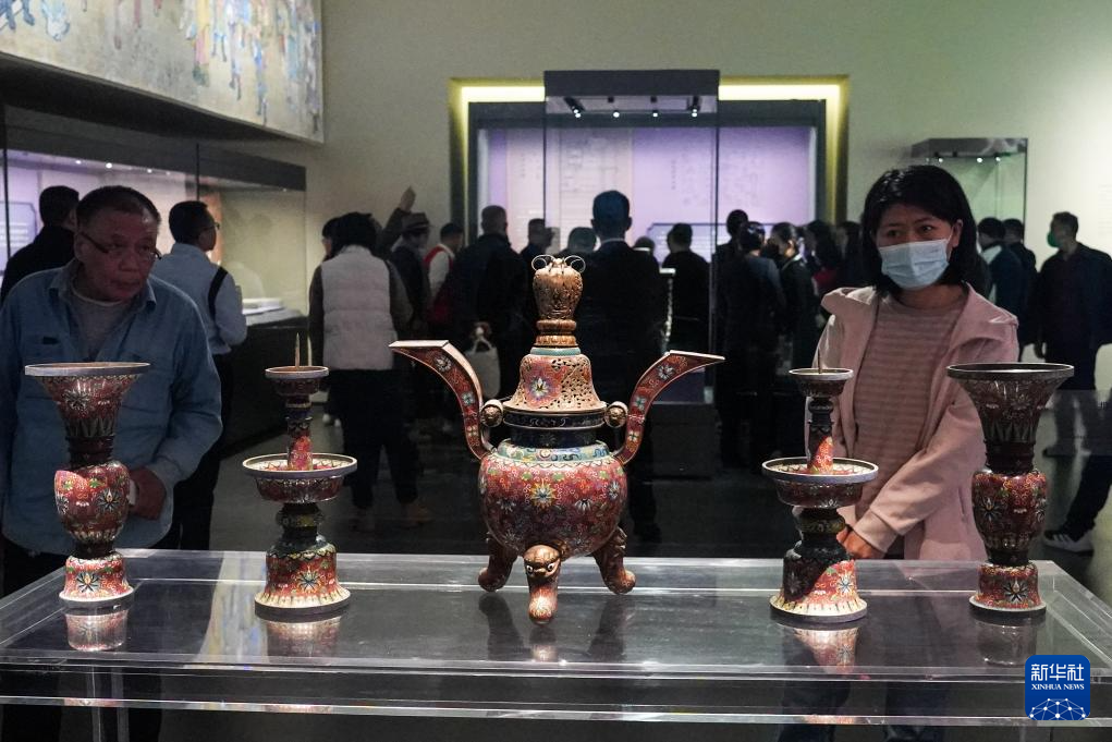 这是展览上陈列的清代象耳象足铜熏炉(11月22日摄)。