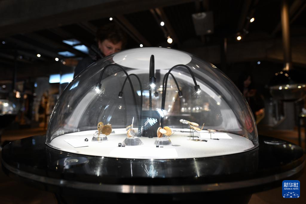 4月12日,人们在瑞士拉绍德封的国际钟表博物馆内观看展品。
