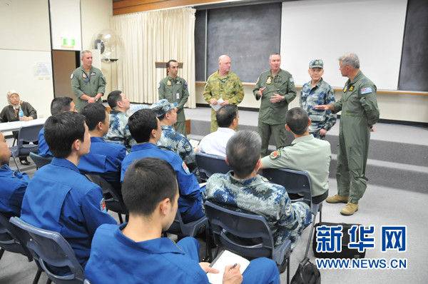 ????3月22日,中國空軍飛抵澳大利亞珀斯皮爾斯空軍基地后,與澳大利亞空軍就搜救工作交換意見。新華社記者 黃書波 攝