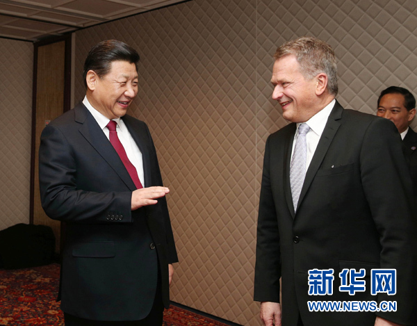 ????習近平表示,去年4月你訪華期間,我們一致同意將中芬關(guān)系定位提升為面向未來的新型合作伙伴關(guān)系,將投資、環(huán)保、創(chuàng)新、城鎮(zhèn)化作為合作重點領(lǐng)域。一年來,這些合作取得新進展,“美麗北京”環(huán)保項目和芬華創(chuàng)新中心是其中的亮點和典范。希望雙方圍繞兩國關(guān)系新定位,加緊商談有關(guān)政治文件,更好規(guī)劃各領(lǐng)域合作。雙方要共同辦好明年赫爾辛基藝術(shù)節(jié)中國主賓國活動。芬蘭是歐盟重要成員國。中方愿同芬方攜手推進中歐合作。