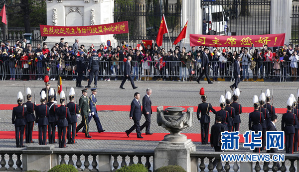 ????3月30日,中國(guó)國(guó)家主席習(xí)近平在布魯塞爾會(huì)見比利時(shí)國(guó)王菲利普。會(huì)見前,習(xí)近平出席菲利普國(guó)王在王宮廣場(chǎng)舉行的隆重歡迎儀式。新華社記者 鞠鵬 攝