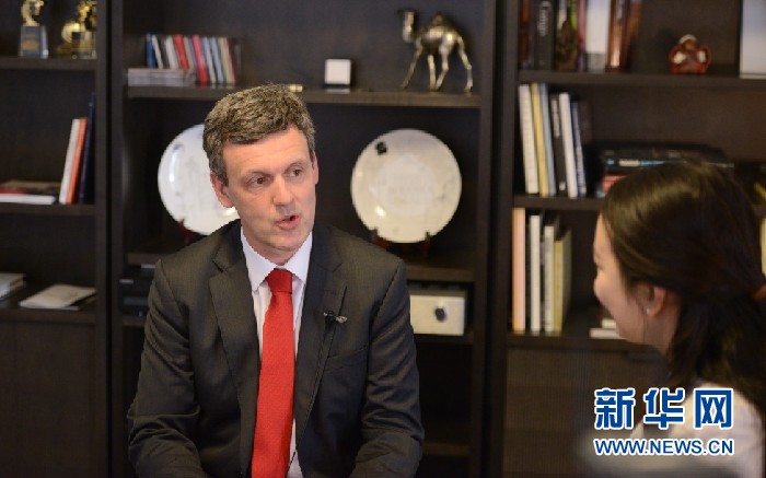 比利時(shí)王國(guó)駐華大使馬懷宇接受新華網(wǎng)專訪。新華網(wǎng)記者郭小天攝