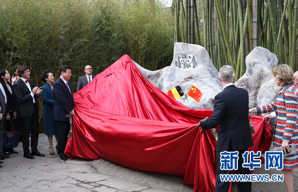 ????3月30日,國家主席習(xí)近平和比利時(shí)國王菲利普共同出席比利時(shí)天堂公園大熊貓園開園儀式。這是習(xí)近平和夫人彭麗媛同菲利普國王夫婦共同為大熊貓園揭幕。 新華社記者 龐興雷 攝