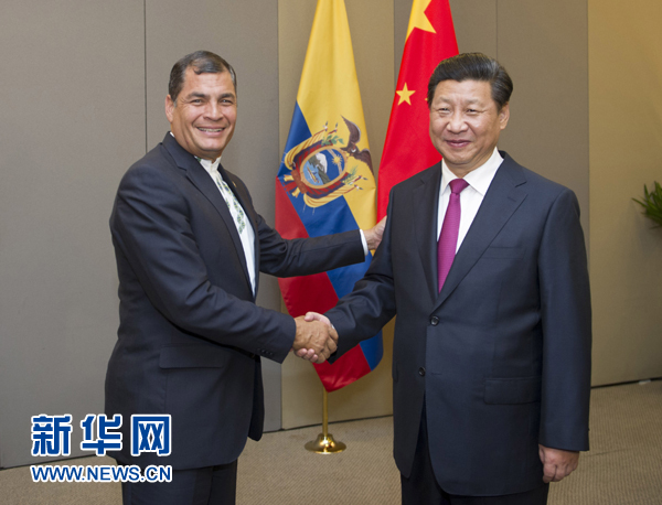 ??? 7月16日,國(guó)家主席習(xí)近平在巴西利亞會(huì)見(jiàn)厄瓜多爾總統(tǒng)科雷亞。新華社記者謝環(huán)馳攝