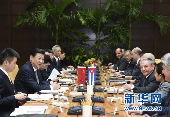 ????勞爾·卡斯特羅熱烈歡迎習近平訪問古巴,并愉快憶及他以往訪華情景,表示兩國關系正處在歷史最好時期,兩國合作擴大到各領域。我期待著同習近平主席就發(fā)展兩國關系深入交換意見,并見證一系列重要合作協(xié)議簽署,顯示我們加強合作的共同意愿。