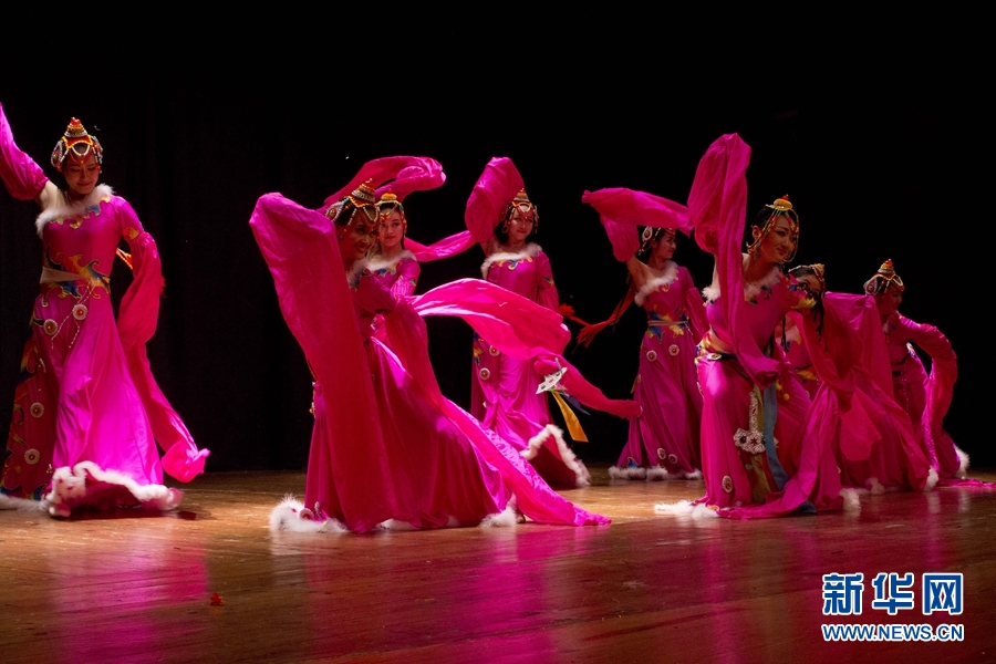來自中南民族大學(xué)的演員在臺上表演。新華網(wǎng)發(fā) Xesco攝