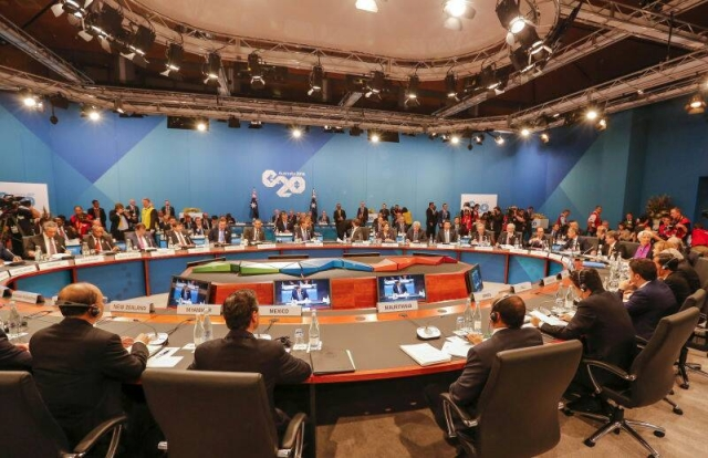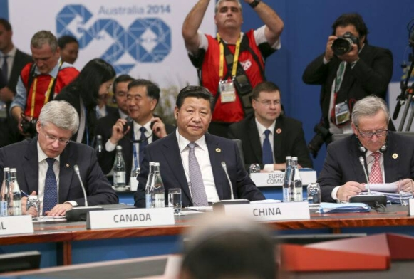 ????(圖為2014年11月15日,二十國集團領(lǐng)導(dǎo)人第九次峰會在澳大利亞布里斯班舉行。國家主席習近平出席會議并發(fā)表題為《推動創(chuàng)新發(fā)展 實現(xiàn)聯(lián)動增長》的重要講話。新華社發(fā))